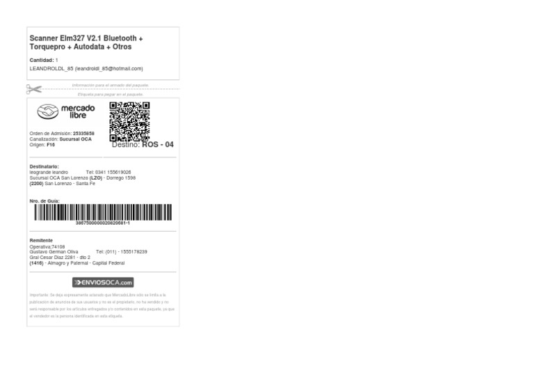 Ejemplo de Etiqueta de Envío para Mercado Libre Argentina | PDF