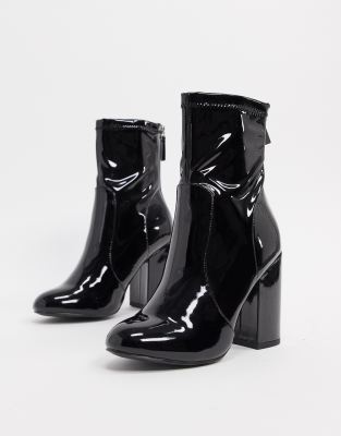 New Look patent PU heeled sock boots in black | ASOS